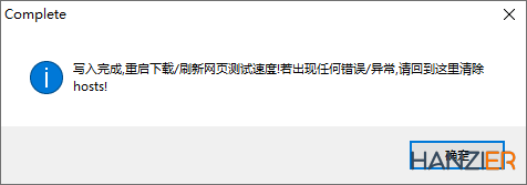 若不成功请自行排查原因,一般是安全软件阻止/hosts文件被修改过文件权限不让写入