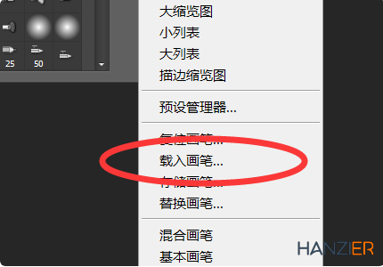 - 然后在打开设置画笔的菜单栏中选择“载入画笔”的选项